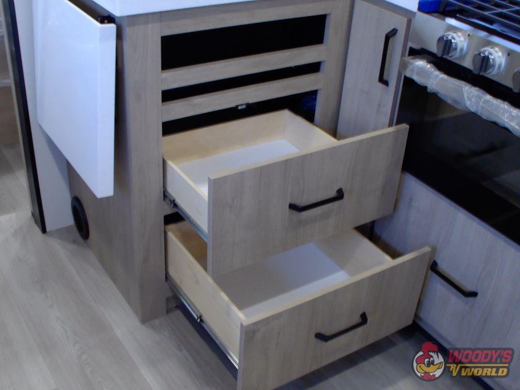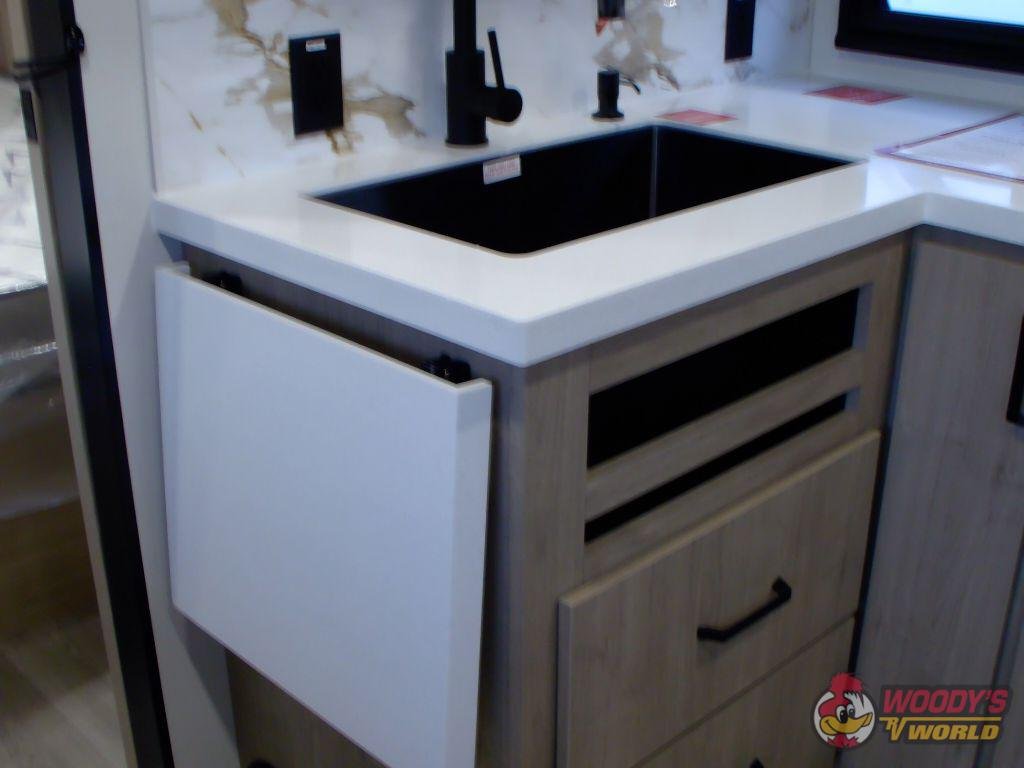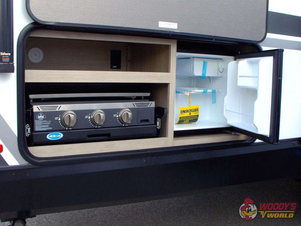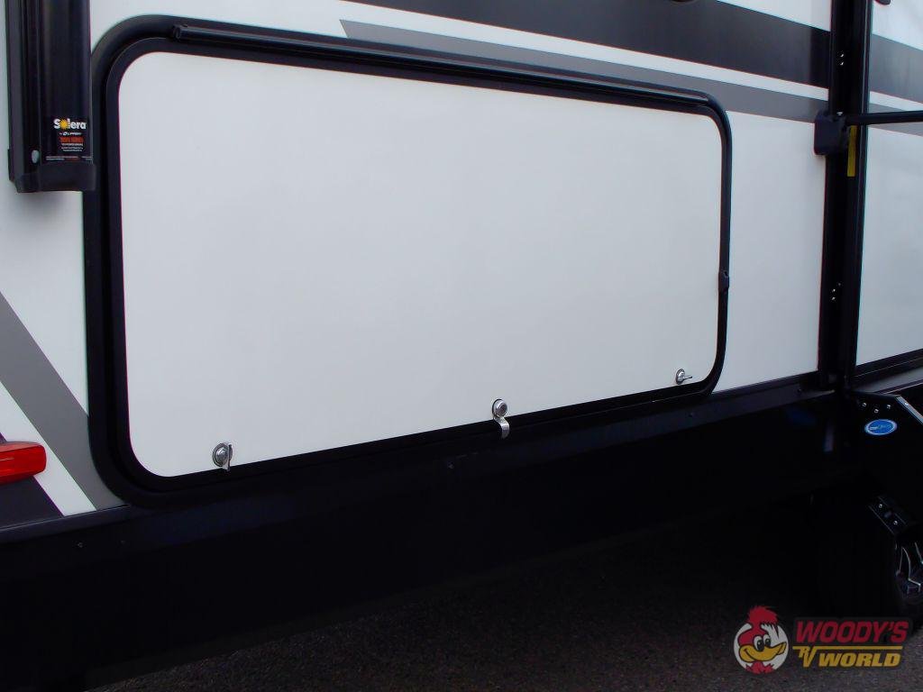 • Exterior Features: Outdoor Kitchen, Pass-Through Storage, Exterior Speakers, TV Hookup, Rear Ladder, Spare Tire, Backup Camera Prep