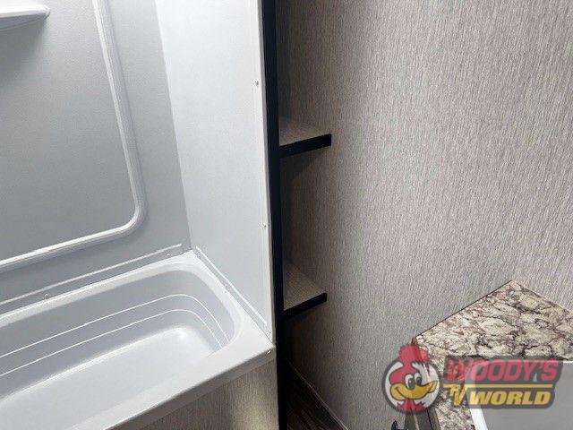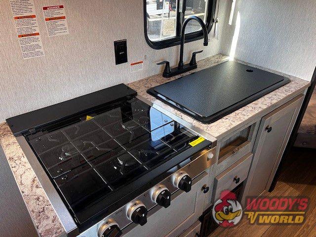 • LTD PACKAGE: 12 VOLT CONVERTER, FUEL SAVING AERODYNAMIC PROFILE, EZ LUBE ELECTRIC BRAKE AXLES, ROCK GUARD, FRONT & REAR STAB. JACKS, 20LB LP TANK, RADIUS TINTED SAFETY GLASS WINDOWS, SMOKE DETECTOR, C/O DETECTOR, RADIAL TIRES, MONITOR PANEL, ONE PIECE PVC ROOF MEMBRANE, RANGE HOOD W/ LT & EXHAUST FAN, ELECTRIC AWNING, SPARE TIRE & CARRIER, HDTV ANTENNA, NIGHTSHADES, PASS THRU STORAGE (WHERE AVAILABLE), QUICK CONNECT GAS LINE, OUTSIDE SHOWER, CABLE/SATELLITE HOOK-UP, POWER ROOF VENT IN BATH, LED LIGHTS, WINDOW TREATMENTS, BALL BEARING DRAWER GUIDES, BATTERY DISCONNECT, 100 WATT SOLAR PANEL