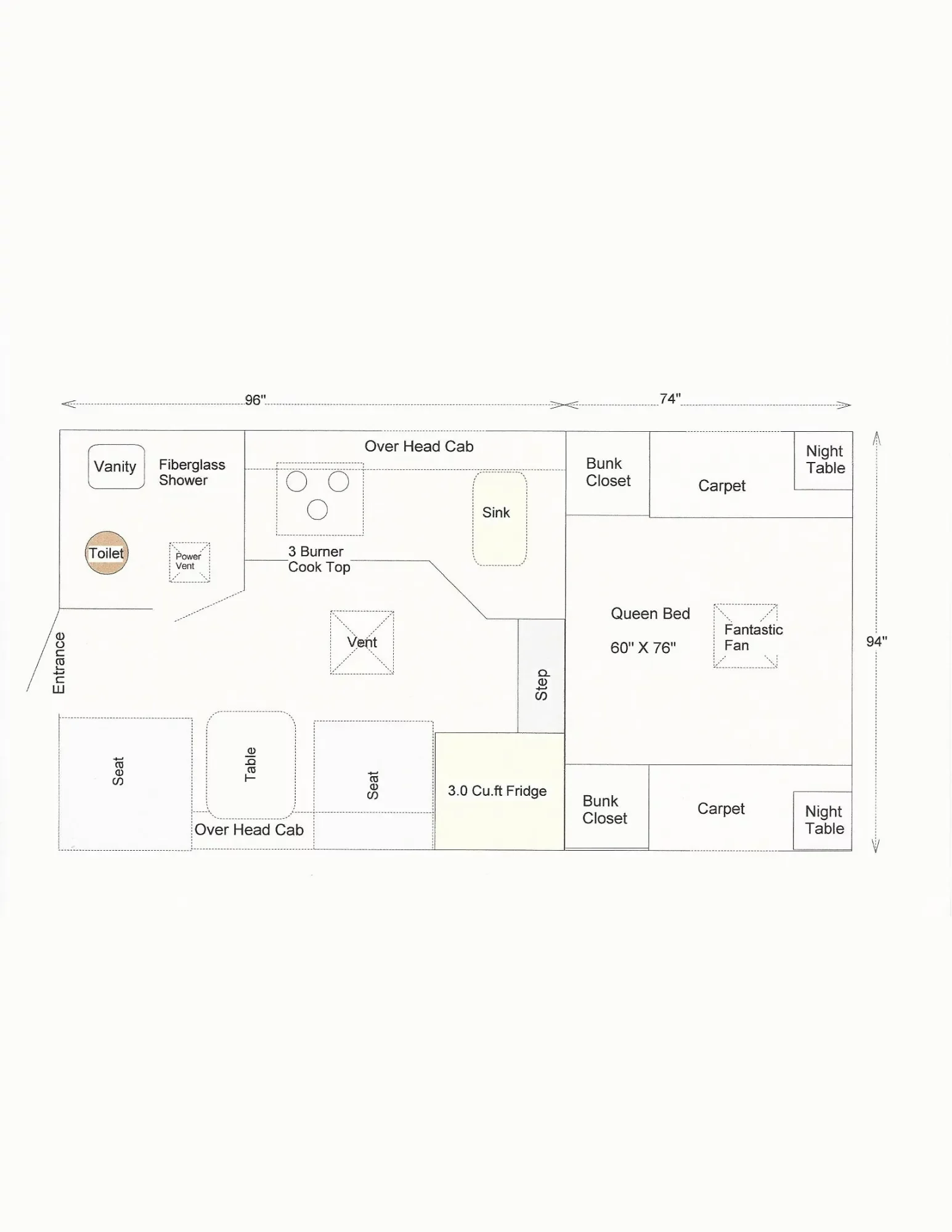 Weight 2220 lbs. Sleeps 3